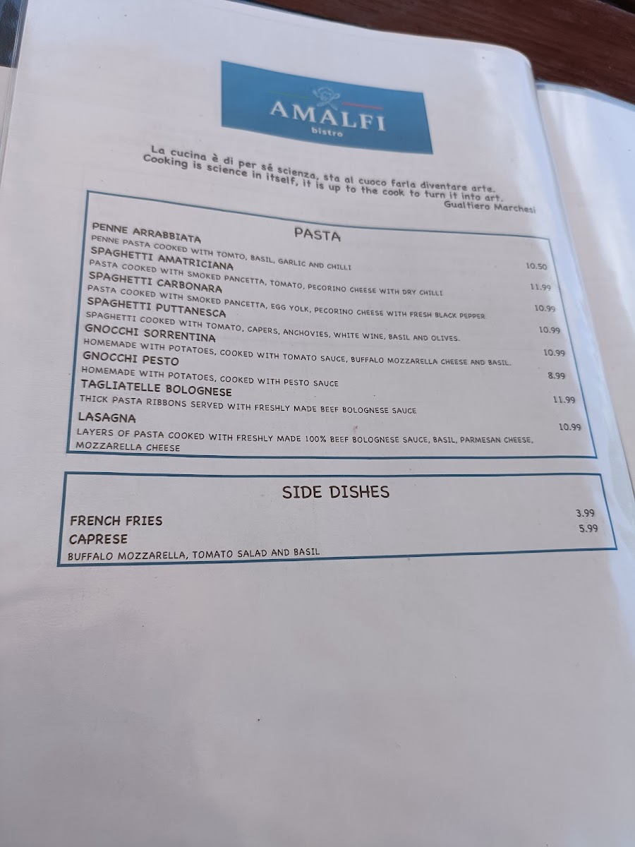 Introducing Amalfi - 1 Can Bridge Way, a delightful Italian gem nestled in Chelmsford. Known for its authentic Italian flair, Amalfi offers a carefully curated menu that celebrates traditional dishes made with passion. Each plate tells a story—from the hearty Penne Arrabbiata (£10.50) to the rich Spaghetti Carbonara (£10.99) and Lasagna (£10.99). The cozy atmosphere enhances the dining experience, complemented by friendly service that makes you feel right at home.
